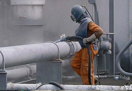 The first step to performing sandblasting is pouring the sand into the sandblasting machine. Sandblasting machines have a chamber on top in which the sand is poured. The sandblasting machine is then connected a conventional air compressor that, when activated, propels the sand out through a handheld nozzle. Depending on the settings, the pressure of the sand may be anywhere from 50 to 130 pounds per square inch (PSI).